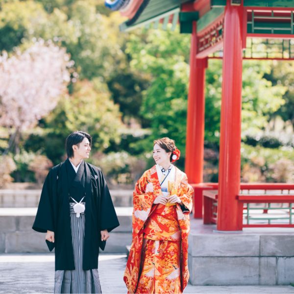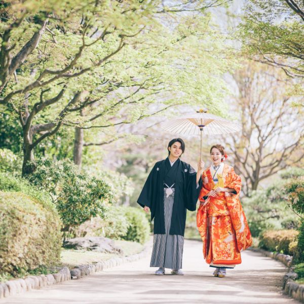 お二人のヘアメイクと着付けが完成したら撮影場所へ移動します。四季を楽しめるのはロケーションフォトならでは。季節の空気や色を感じながら撮影をお楽しみください。