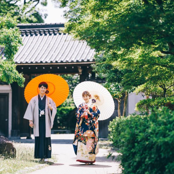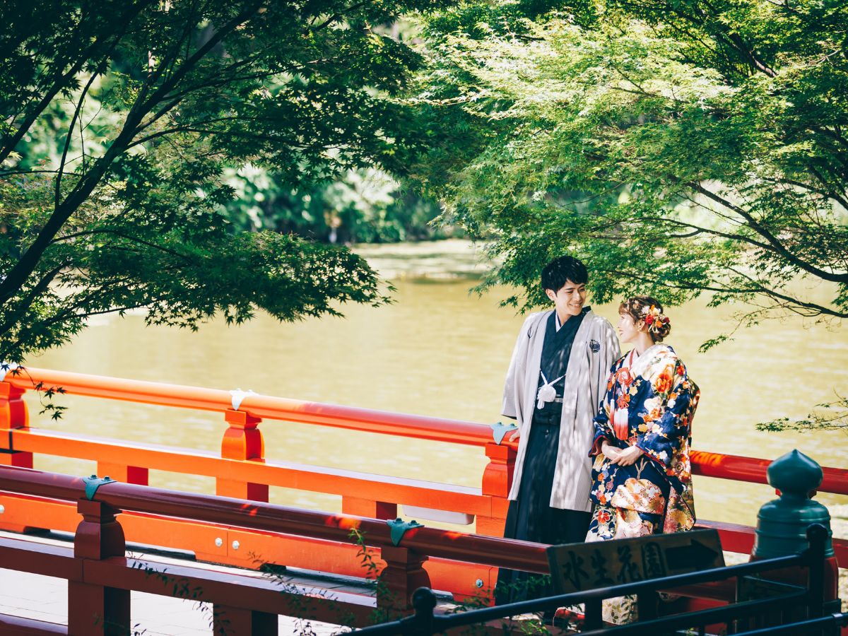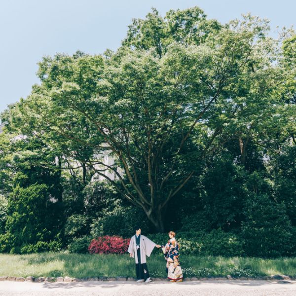 お二人のヘアメイクと着付けが完成したら撮影場所へ移動します。四季を楽しめるのはロケーションフォトならでは。季節の空気や色を感じながら撮影をお楽しみください。