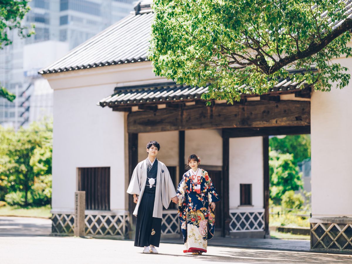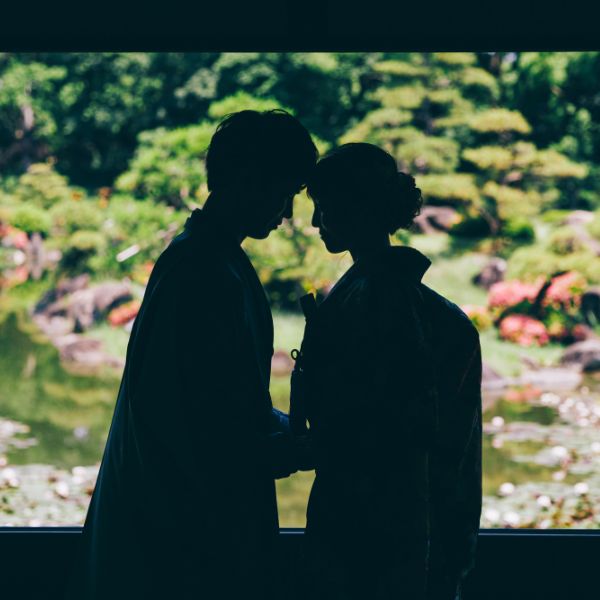 華やかな色打掛が映える和庭園で理想の前撮りを。
