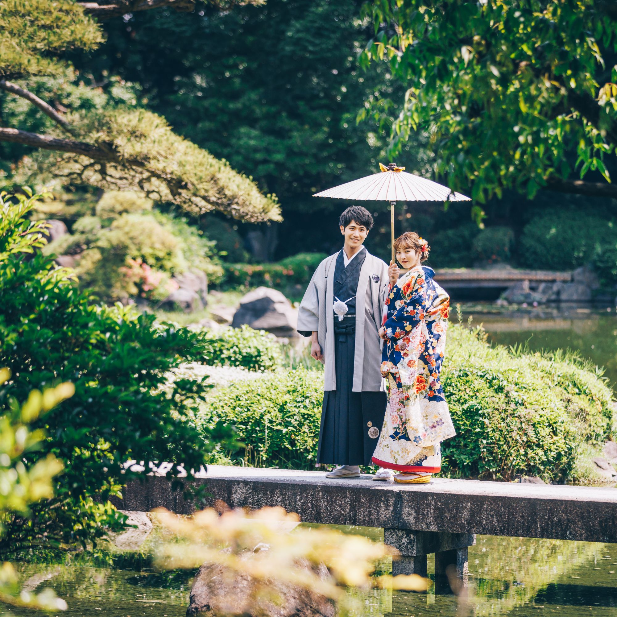 近代造園のスタイルを確立したと称えられる造園家が手掛けた純日本風の林泉回遊式庭園は、和装前撮りにぴったりです。