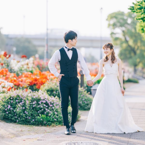 お二人のヘアメイクと着付けが完成したら撮影場所へ移動します。四季を楽しめるのはロケーションフォトならでは。季節の空気や色を感じながら撮影をお楽しみください。