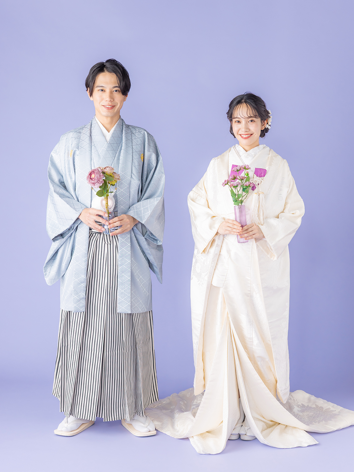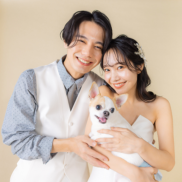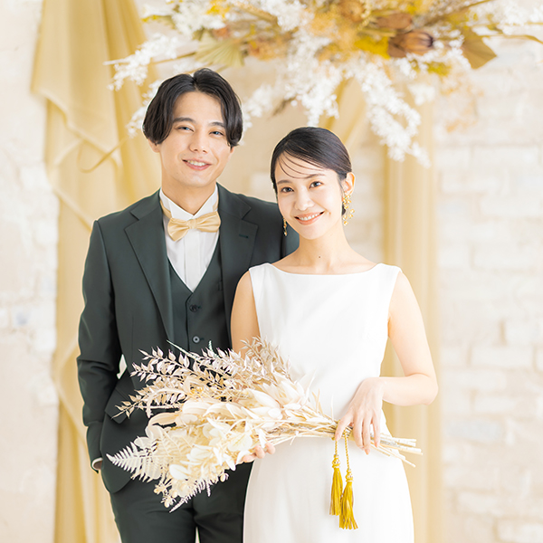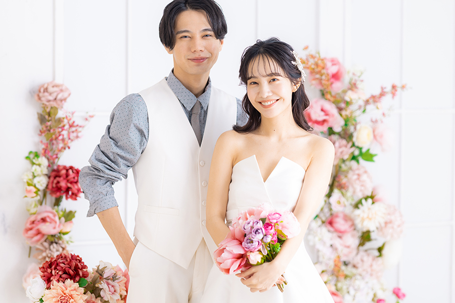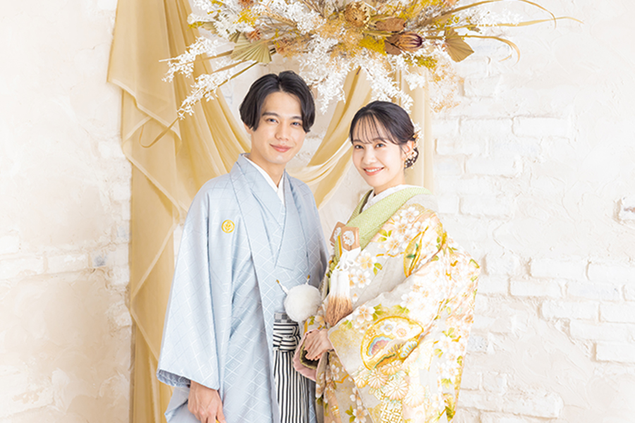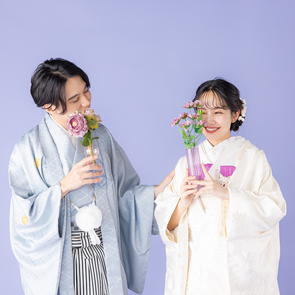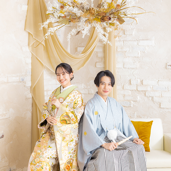 お二人のヘアメイクと着付けが完成したらスタジオへ移動します。ウェディングフォトに特化したカメラマンがお二人の素敵な表情を写真に残します。