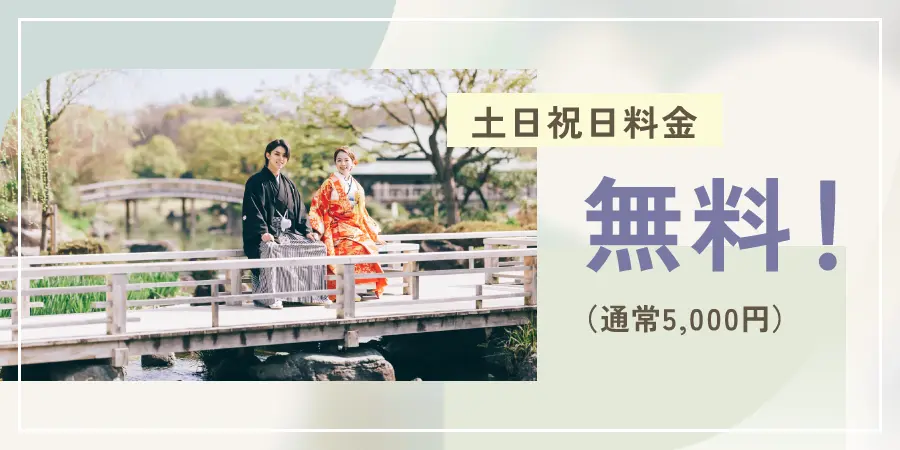 土日休みのおふたりの朗報!通常5,000円の土日祝日料金が無料に!