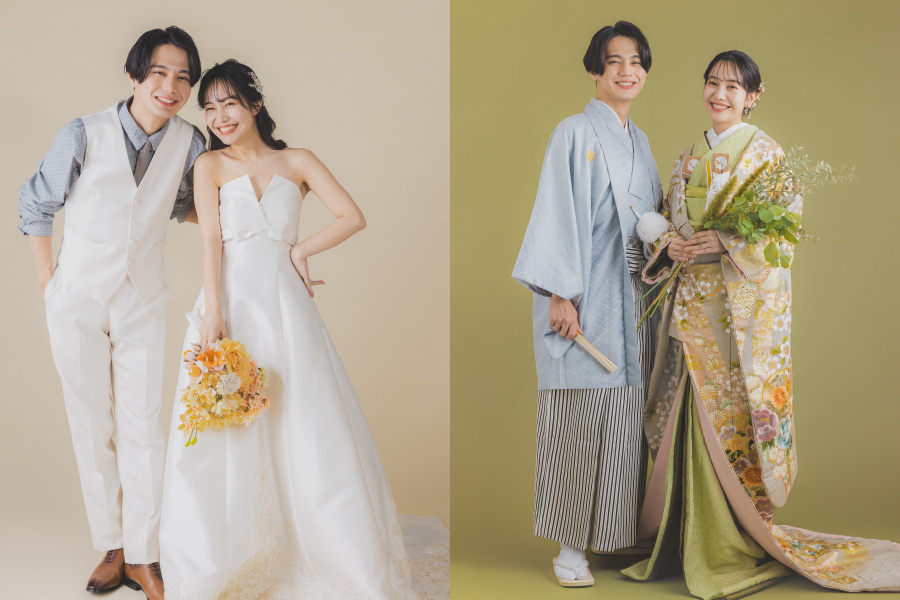 ドレスと和装でたっぷり撮影!多彩な衣装コレクションから和装1着・洋装1着の2つのコーディネートで撮影をお楽しみいただけます。