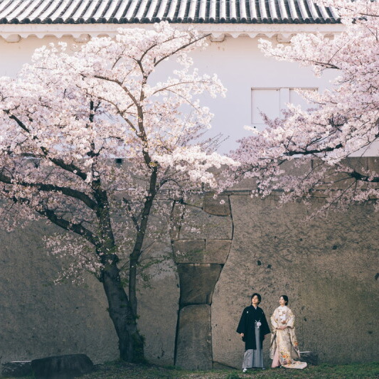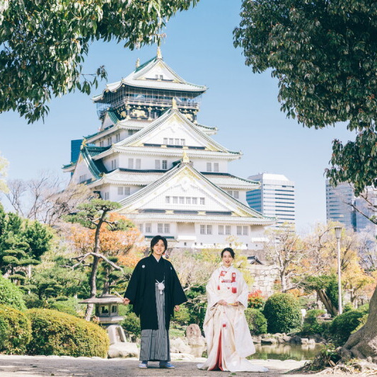 重要文化財に指定される古建造物が連なるなかに悠然と佇む大阪城で桜や紅葉などの季節の彩りを写真に残していただけます。※別途申請料あり