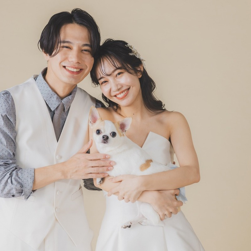 紅葉や桜が彩る屋内庭園での写真や、白背景の結婚写真らしいお二人の姿が残せるスタジオフォトプランです。衣装と撮影データなど、撮影に必要なものがフルセットになったお得なプラン!