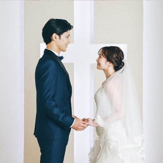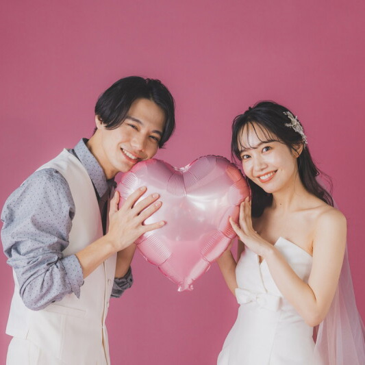 チャペルで結婚式さながらの写真や、白背景の結婚写真らしいお二人の姿が残せるスタジオフォトプランです。衣装と撮影データなど、撮影に必要なものがフルセットになったお得なプラン!