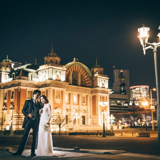 衣装と撮影、約150カットの全カットデータなどがついたお得なロケーションフォトプラン。ネオルネッサンス様式の外観、光溢れるステンドグラスなど目に映る全てが美しい中央公会堂でお二人らしく輝く写真を。※別途申請料あり