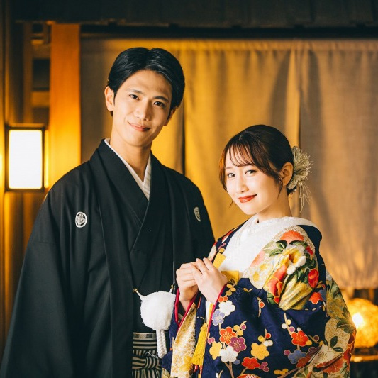衣装と撮影、約150カットの全カットデータなどがついたお得なロケーションフォトプラン。江戸時代~昭和初期の街並みが残る風景に、伝統の和装で佇むお二人。しっとりと情緒ある写真を残していただけます。※別途申請料あり