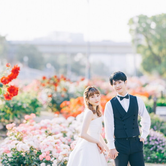 東京ドーム約25個分の敷地に花々が咲き誇る花博記念公園鶴見緑地には、美しい景観がウェディングドレスにぴったり。※別途申請料あり