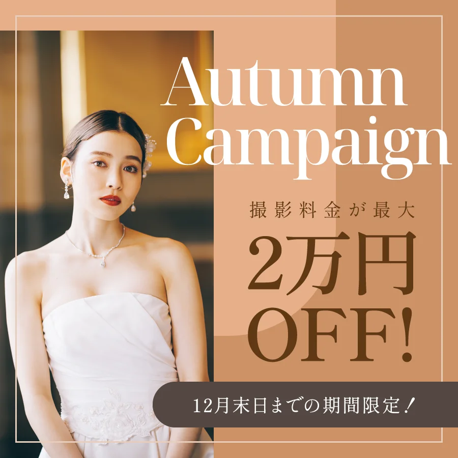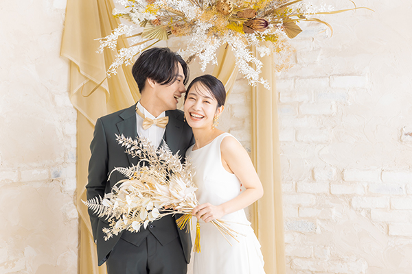 お二人のヘアメイクと着付けが完成したらスタジオへ移動します。ウェディングフォトに特化したカメラマンがお二人の素敵な表情を写真に残します。